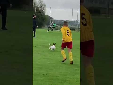 This dog couldn’t contain its excitement after running into a youth soccer match in Belgium.