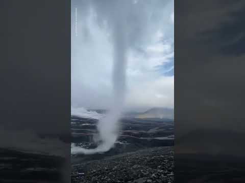 Hiking on a volcano in southwest Iceland, travel photographer Jarrod Roy recorded a funnel cloud tornado touch down on a volcano.