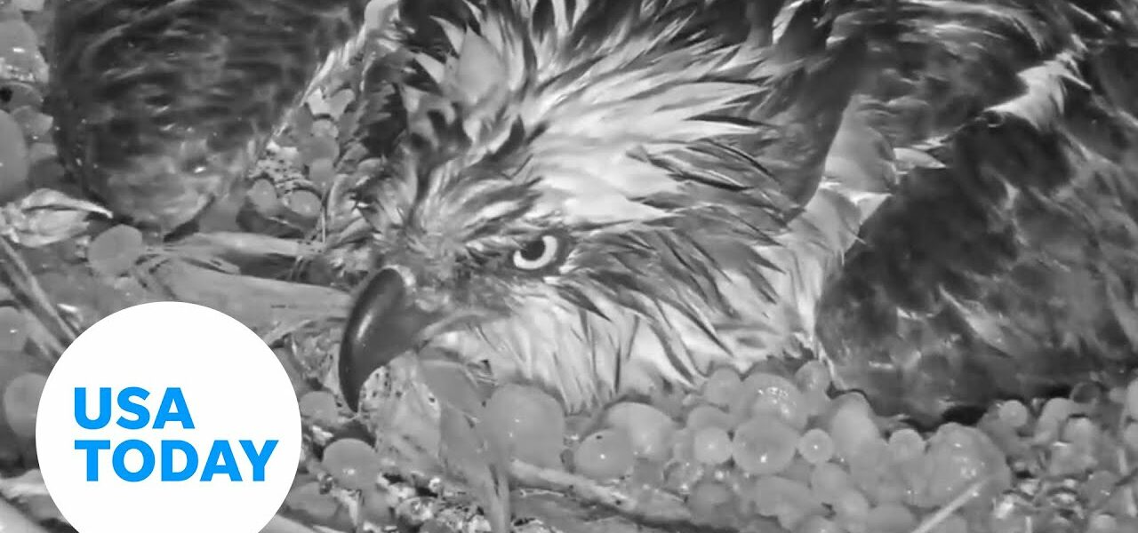 A mother osprey protected her eggs during a hail storm. They are expected to hatch in a few weeks.