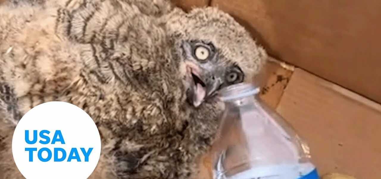 Firefighters fighting a brush fire in Danvers, Massachusetts, saved a juvenile great horned owl's life after he was caught in the wildfire.