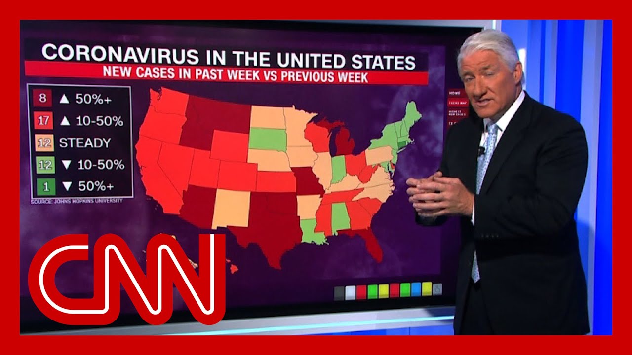 CNN's John King shows how the number of coronavirus cases in 8 states are rising at an alarming rate, particularly in Texas.