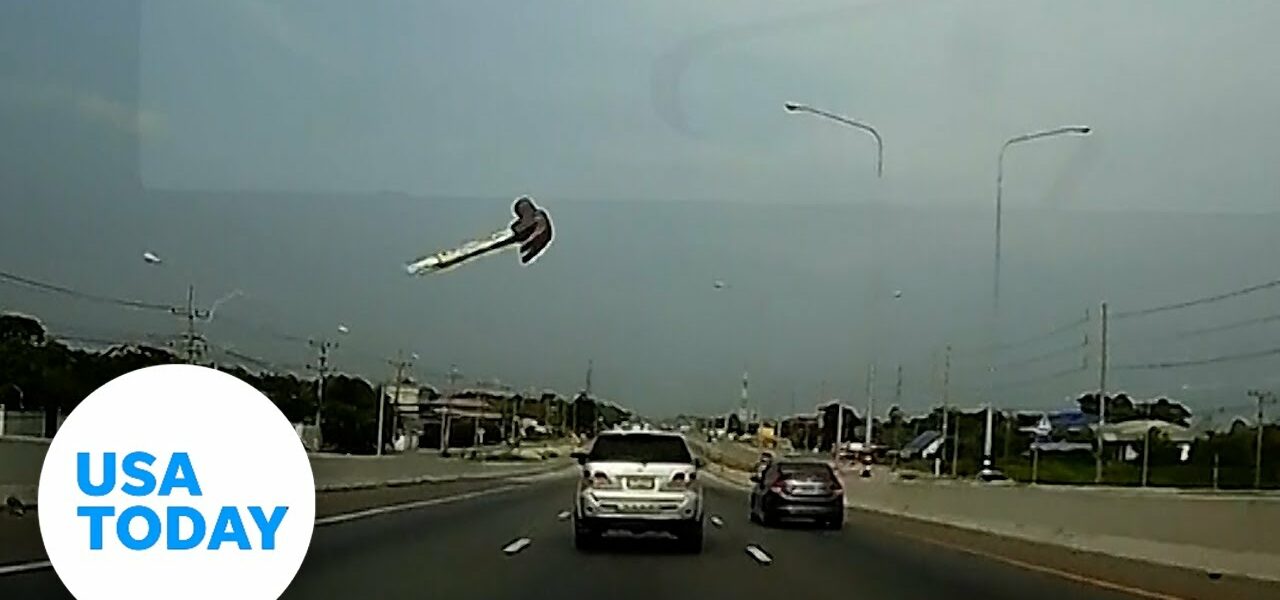A stray hammer flew out of a truck and hit a car traveling behind it in Thailand, prompting the terrified driver to pull over.