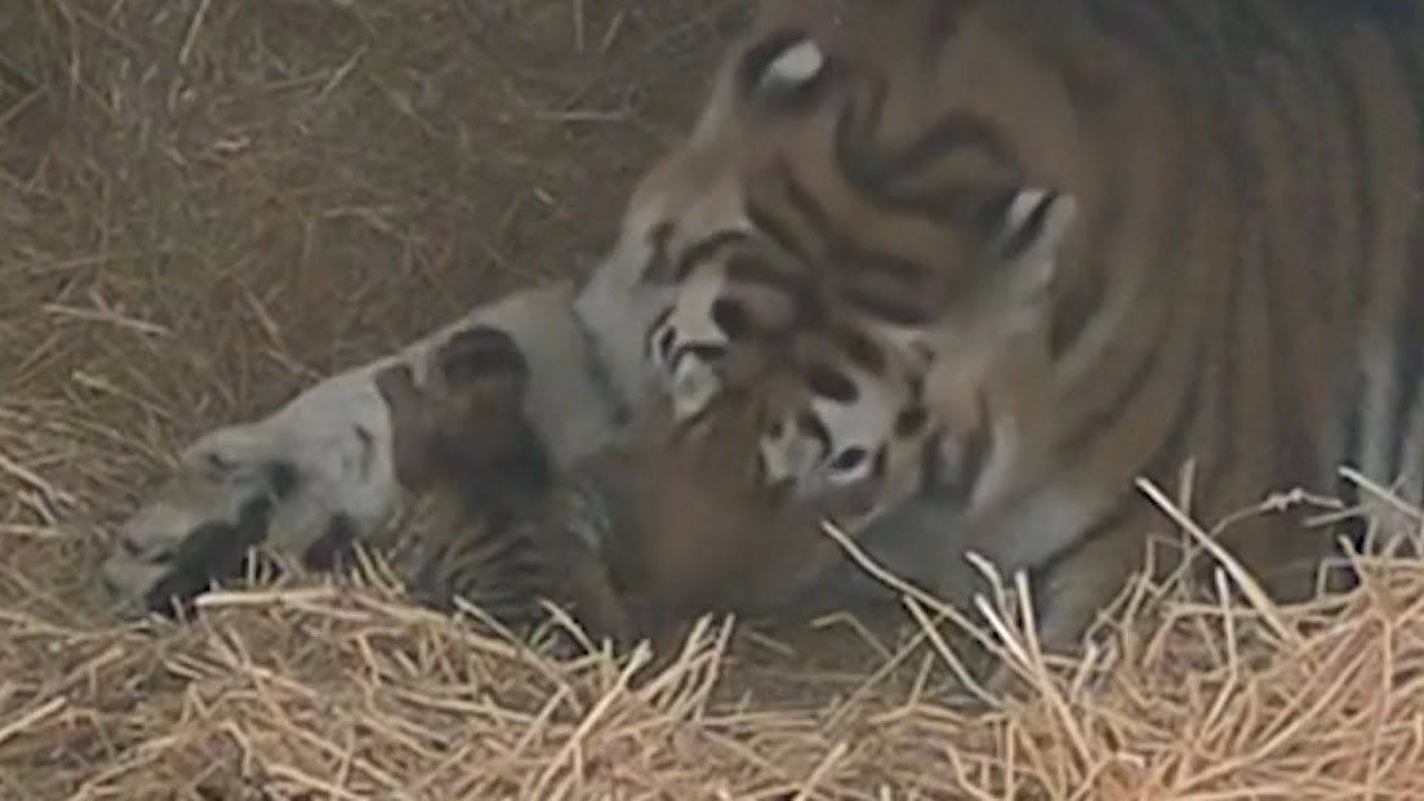 Mazyria, an endangered Amur tiger, gave birth on April 30 after 104 days of pregnancy.