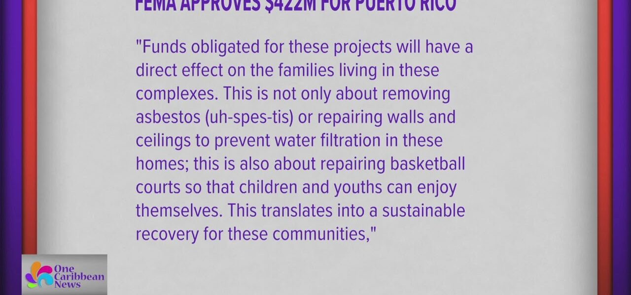 FEMA Approves $422M for Puerto Rico January 28, 2023 No comments One Caribbean News Tagged with caribbean, One Caribbean Television Breaking Caribbean News