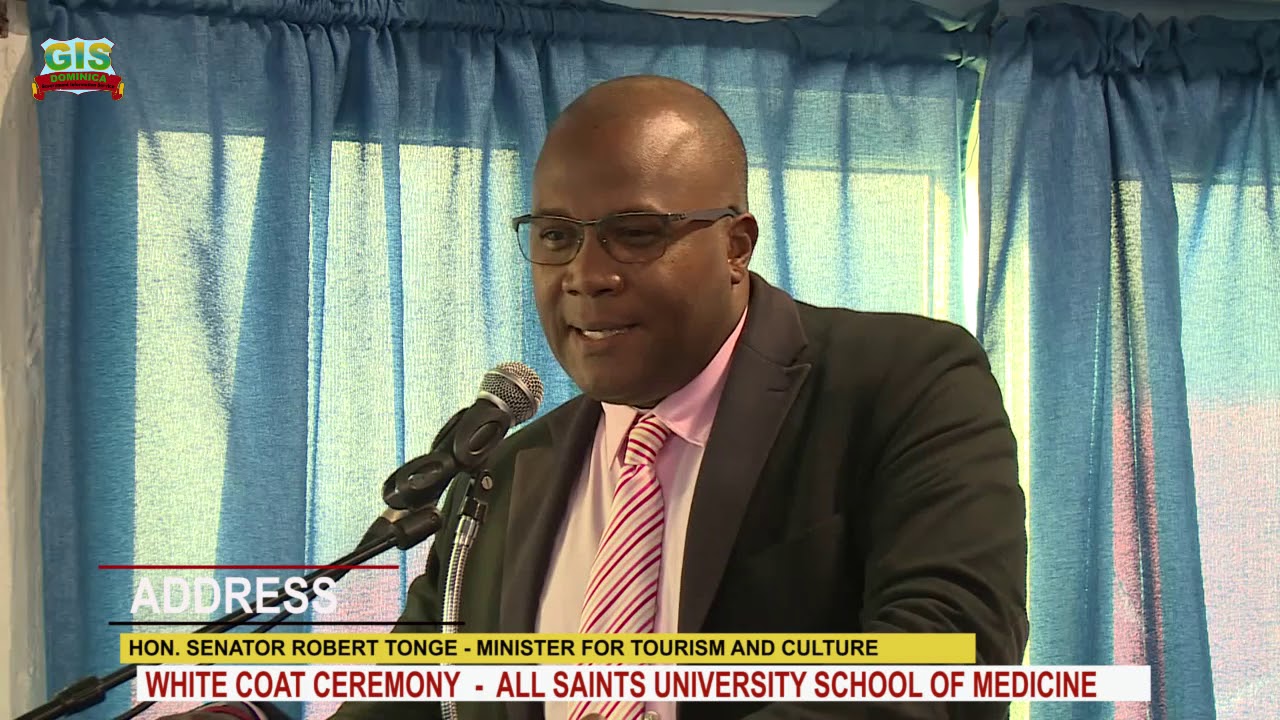 On Saturday December 8, 2018, the Hon. Senator Robert Tonge, Minister for Tourism and Culture addressed the White Coat Ceremony of the All Saints University School of Medicine.
