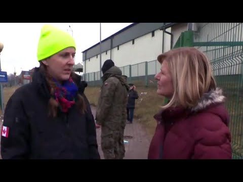 CTV's Joy Malbon speaks with a Canadian-Ukrainian translator at the Medyka border crossing between Ukraine and Poland.