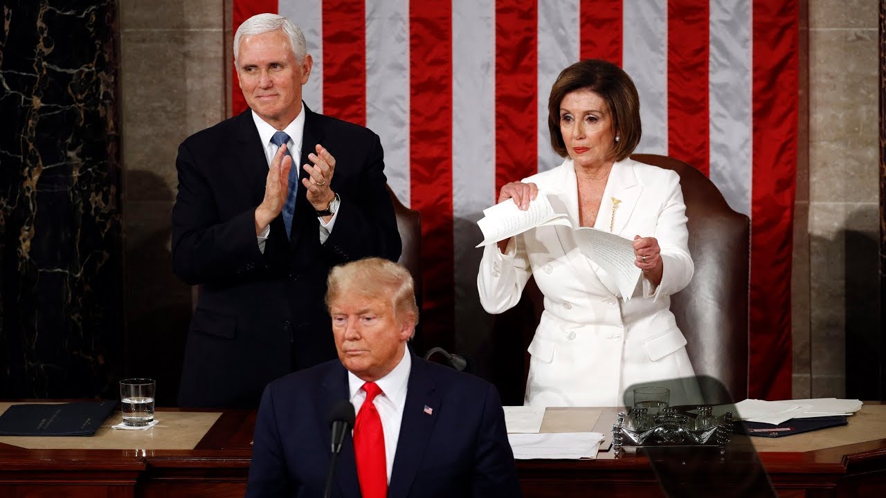 U.S. House Speaker Nancy Pelosi is seen ripping up Trump's speech after her delivered his address.