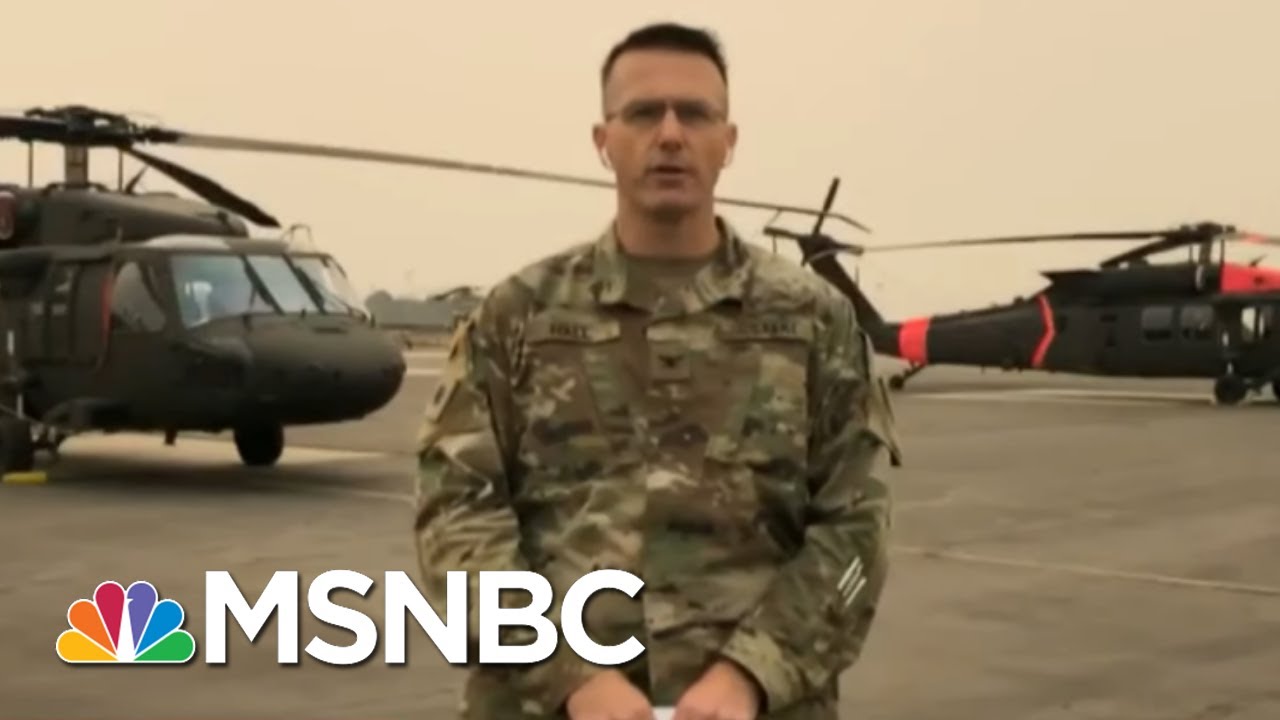 Colonel David Hall, Commander of the California Army National Guard's 40th Combat Aviation Brigade, joins Andrea Mitchell to discuss the work his team is doing to respond to the wildfires in California – conducting search and rescue efforts, transitioning to dropping water – and describe what the situation is like on the ground. Aired on 09/09/2020.