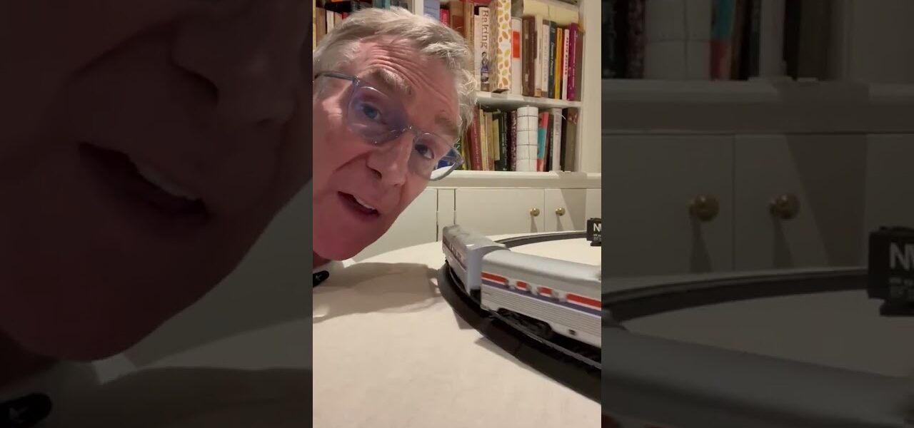 His head is freakishly huge next to that train!
