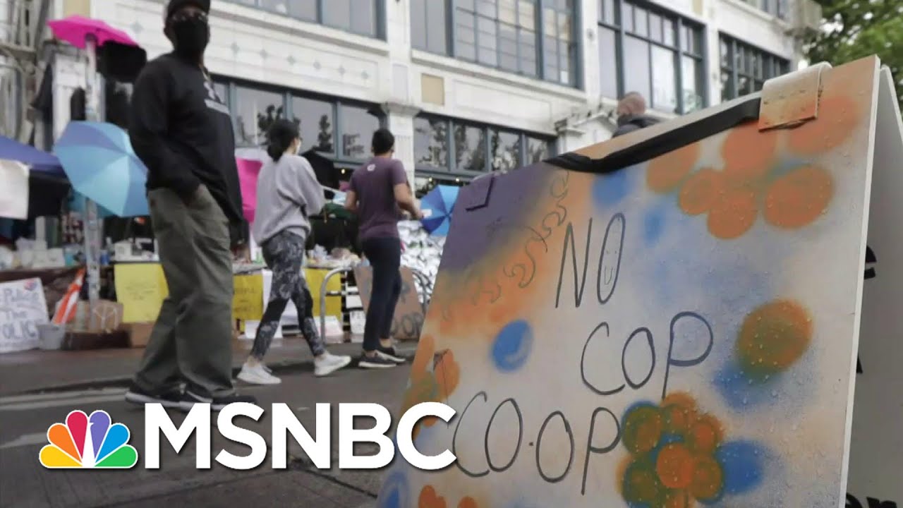 NBC News' Vaughn Hillyard reports from Seattle as protesters have created an "autonomous zone" by an abandoned police precinct. President Trump has threatened to intervene but Mayor Jenny Durkan called the action would be "unlawful" and "illegal." Aired on 06/12/2020.