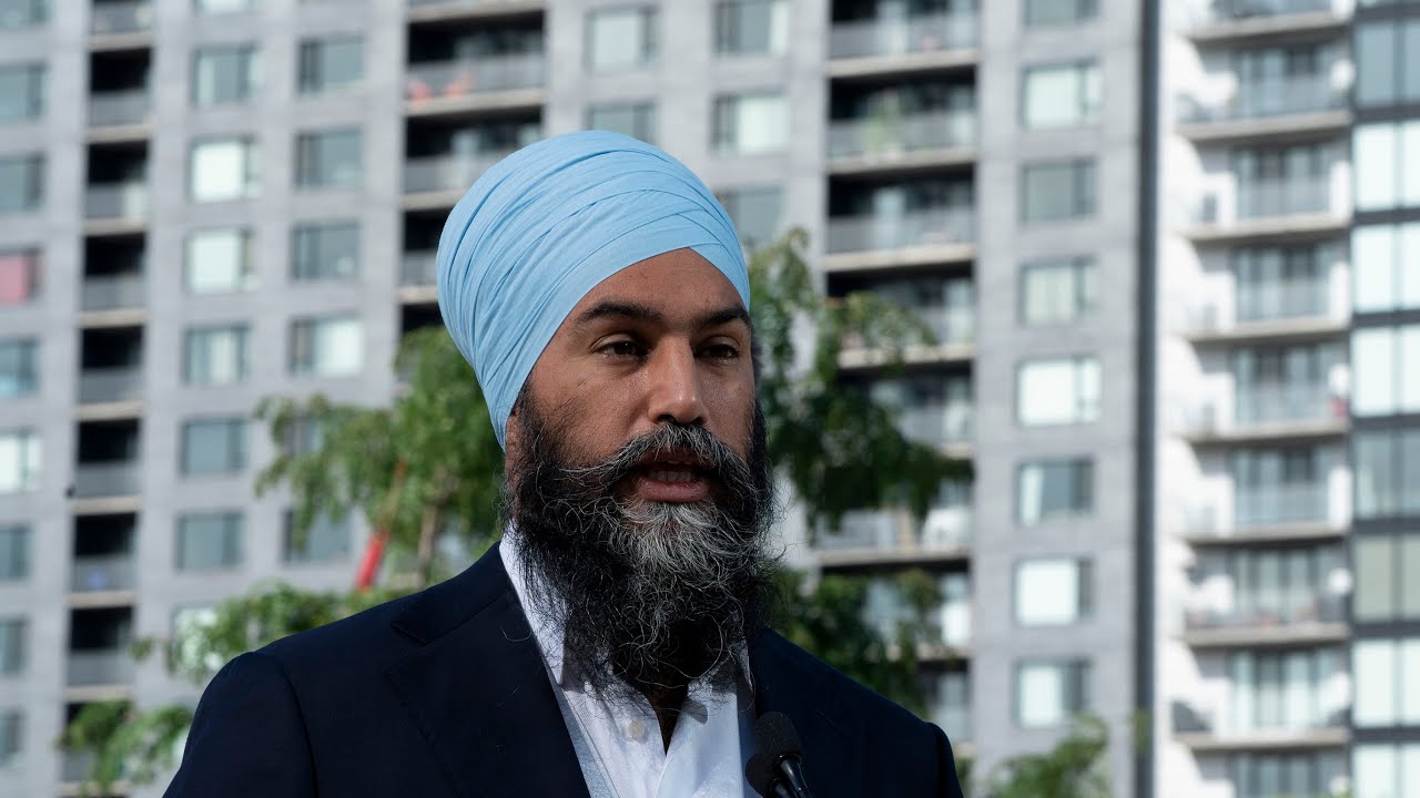 NDP Leader Jagmeet Singh discusses the housing crisis on Sept. 1 while in Montreal, Que.