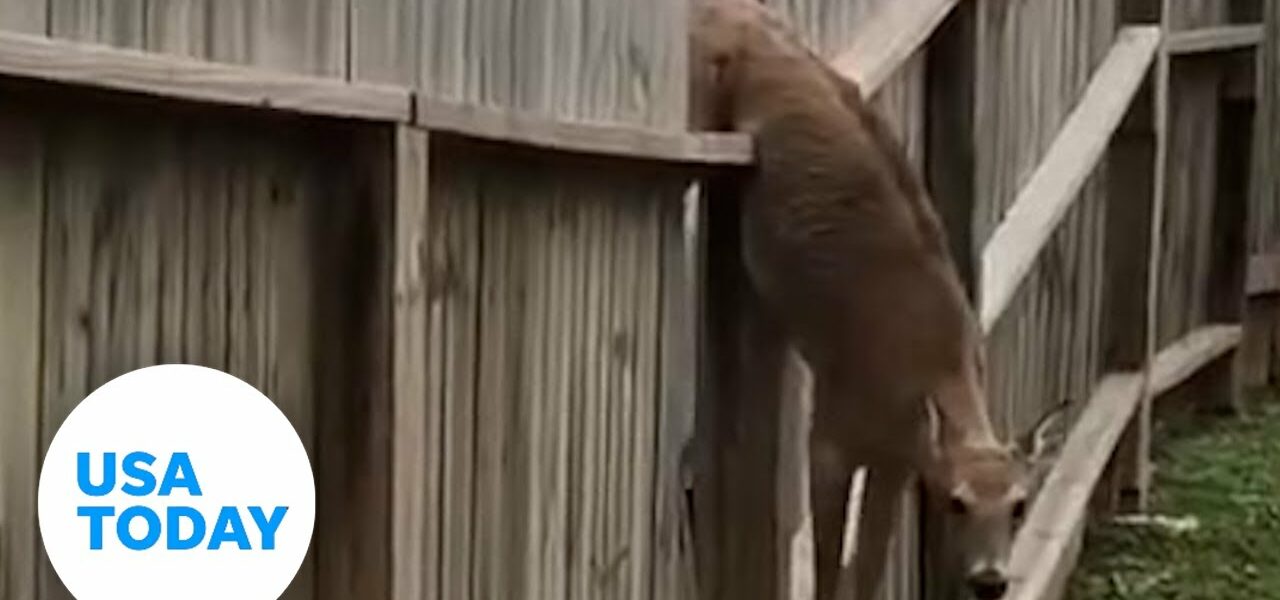 Neighbors get creative to free a deer stuck on their shared fence