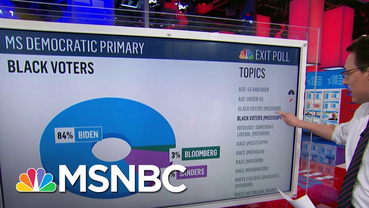 Continue readingExit Poll: 84% Of Black Voters Go For Biden In Mississippi Primary Win | MSNBC