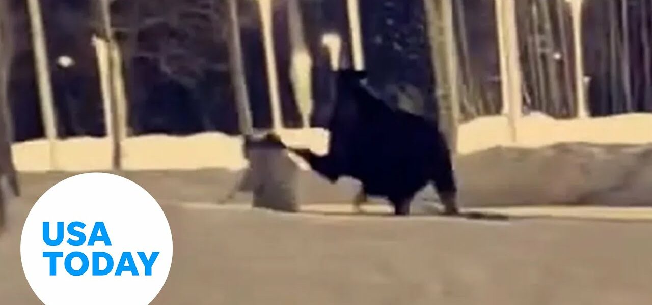 Moose attacks woman on the street, kicks her in the head | USA TODAY