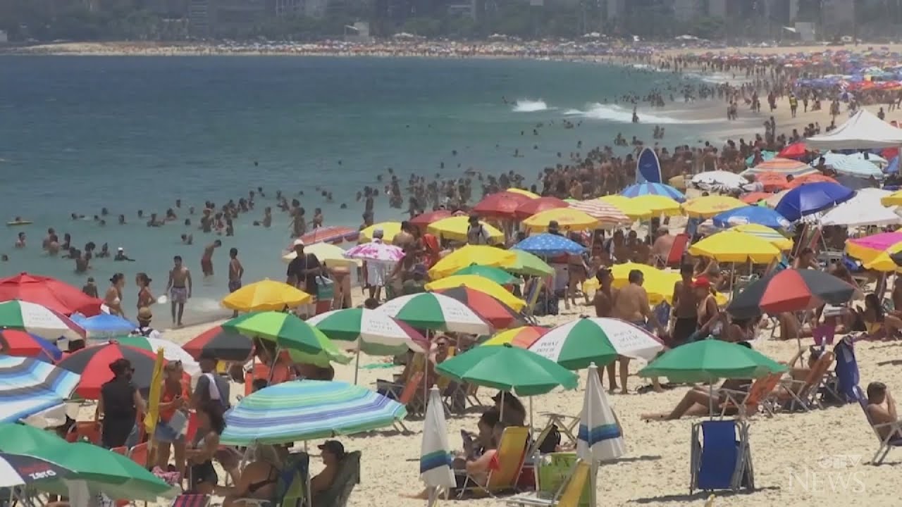 Brazilians flock to beaches as temperature reach 40 C