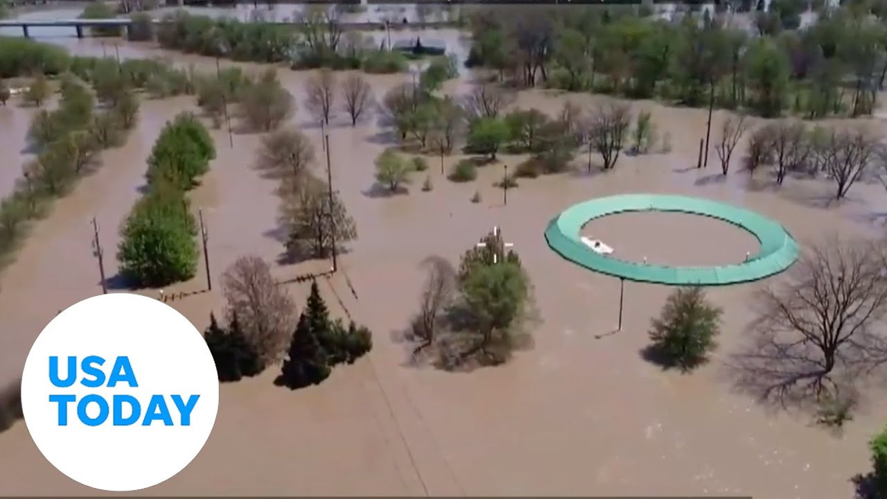 Aerial drone shows massive flooding in Michigan | USA Today
