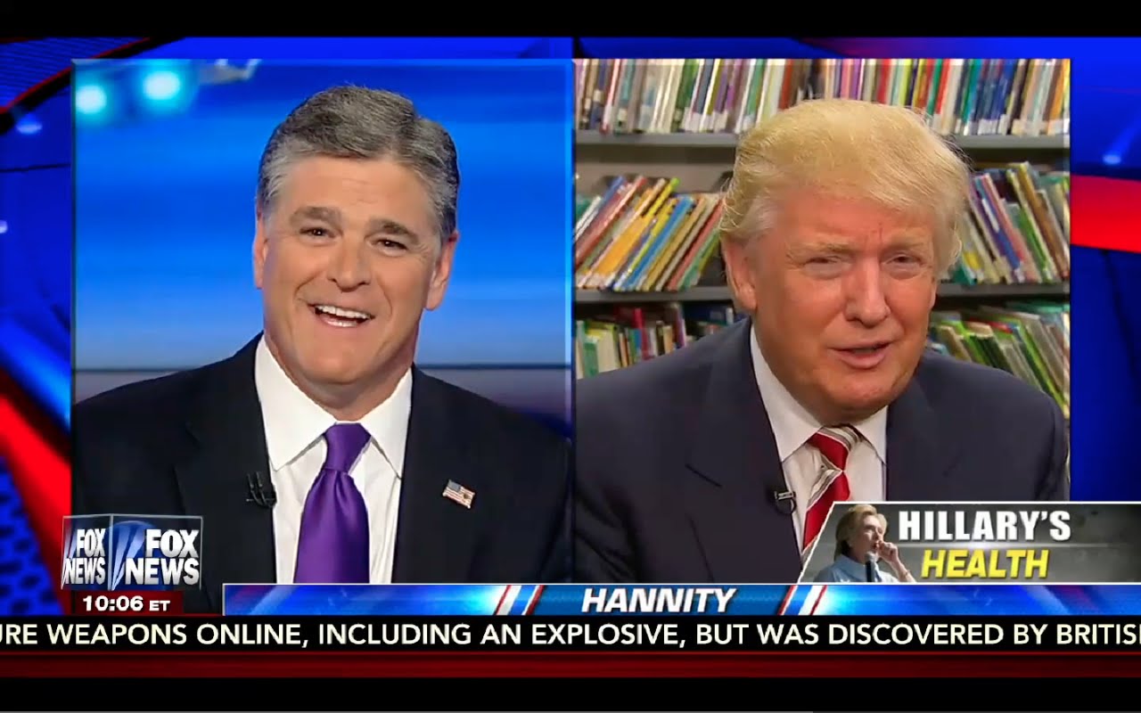 Donald Trump Interview: Hannity 9/13/16 Sean Hannity interviews Donald Trump. Fox News – Hannity – Donald Trump Interview – 9/13/16 https://www.youtube.com/watch?v=i2xnwBuDcyI