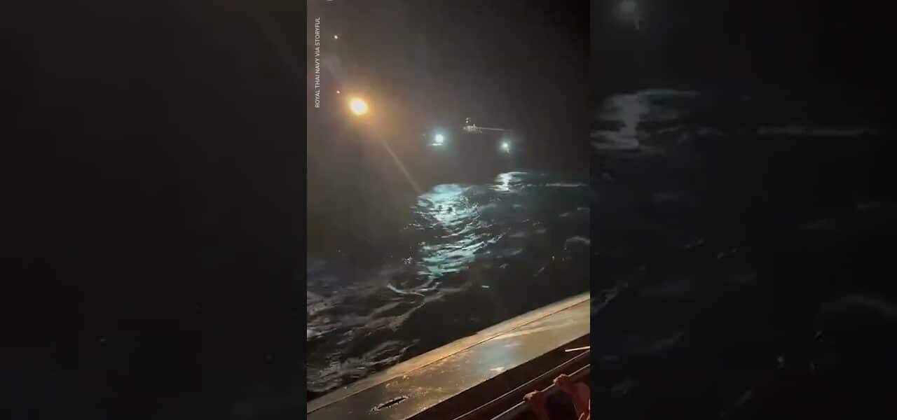 A rescue operation is underway after the Thai navy reported nearly three dozen sailors went missing when one of its warships capsized in Thailand waters on Sunday night.