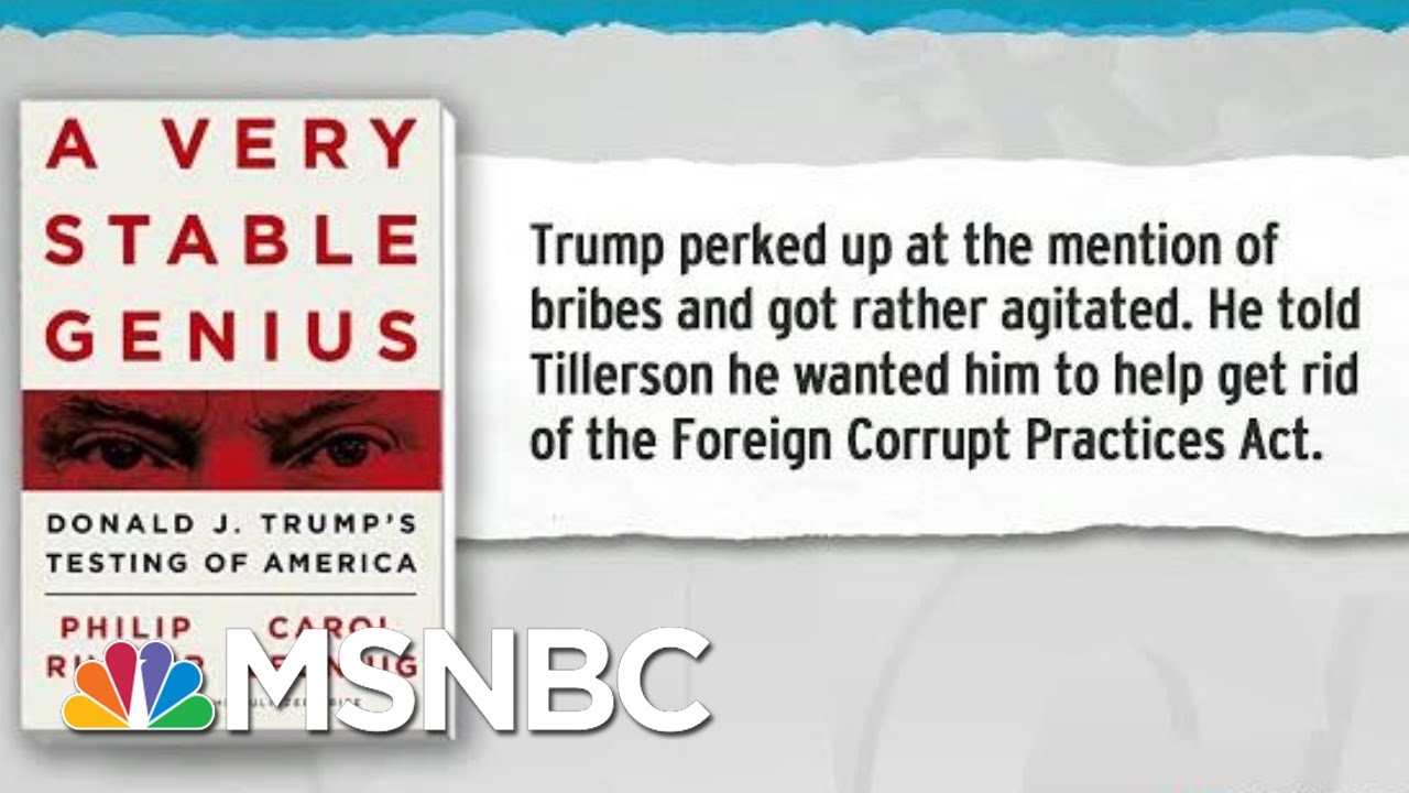 Rachel Maddow reads an excerpt from "A Very Stable Genius" by Philip Rucker and Carol Leonnig, in which Donald Trump, apparently not understand how laws are passed in the United States, tries to push his staff to undo the Foreign Corrupt Practices Act. Aired on 01/20/20.