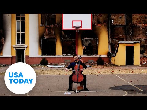 Ukrainian musicians play their instruments throughout the war-torn country, some surrounded by debris left behind from Russian attacks.