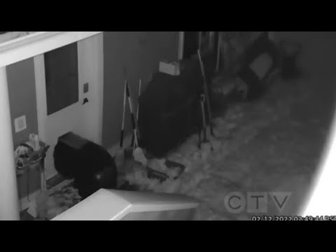 A home surveillance camera caught the moment that a trio of bears broke into a Nanaimo, B.C., home through a pet door.